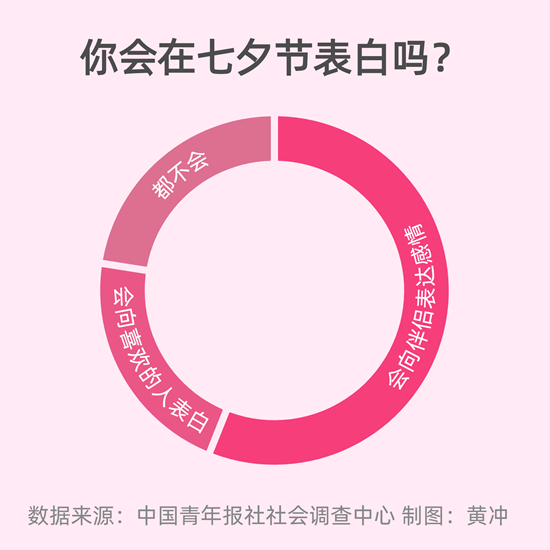 调查中,77.4%的受访者会在七夕表白,其中56.0%的受访者会向伴侣表达感情,21.4%的受访者会向喜欢的人表白。