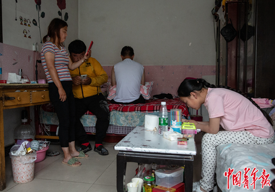 7月18日早上7点半,北京市顺义区河北村,父母正在通过面部识别登录自己的送餐平台账号,准备开始早餐时段的接单,奥奥坐在沙发上写作业。这间约十几平方米的平房暑假期间要住下一家四口。