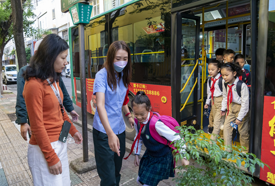 新学期伊始,昆明公交集团在昆明市主城区开行了多条“校园公交专线”,为广大师生家长提供出行服务。截至9月1日,昆明公交集团已先后开行了3批共计28条“校园公交专线”。新华社记者 陈欣波/摄