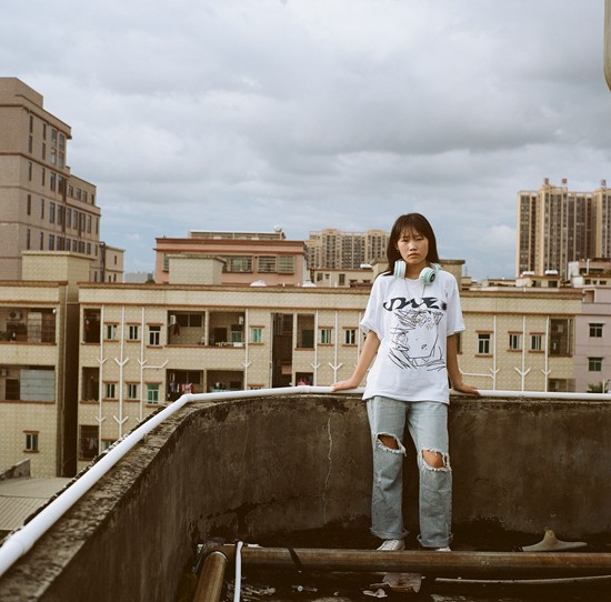 9月1日,广东省东莞市石排镇,小兰站在她工作的针织厂宿舍楼天台。如今她已不再迷恋夸张炫丽的造型,恢复一头黑发,衣着朴素。辗转换了几份工作后,她来到这里做工,平日里住在工厂提供的宿舍里,虽然房间十分拥挤,但节省了生活上的开支。
