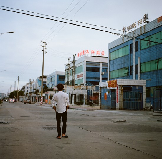 8月29日,广东省东莞市石排镇,来自云南的苗族小伙渊华站在他工作的电子厂外。积累了几年工作经验的他,现在是镇上电子厂的领班,每月能赚四五千元。工厂管理严格,进出必须拿着印有照片的员工证,他只有在周日才有机会走出工厂,精心打扮前往公园,等待心仪的另一半出现。