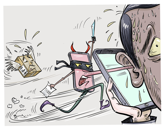 近日,有收件人发现,明明快递还在路上运输,自己却接到了“包裹丢失给予赔偿”的诈骗电话。快递面单被交易贩卖,信息泄露的环节是多方面的。快递员末端、快递站点网点、公司总部、电商平台商家,这四个环节都是常见的泄露渠道。(《北京晚报》11月3日)漫画:徐简