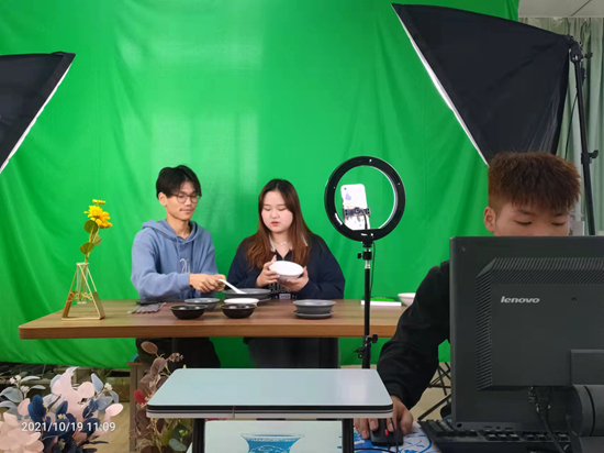 每天在校上完理论课,他和同学来到工作室,在校企双方老师带领下编写文案、拍摄视频并剪辑,还学习直播用语、客户互动技巧及直播室应急处理等知识。