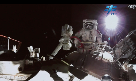 11月7日18时51分,航天员翟志刚成功开启“天和”核心舱节点舱出舱舱门,截至20时28分,航天员翟志刚、王亚平先后从“天和”核心舱节点舱成功出舱。 中国载人航天工程办公室供图