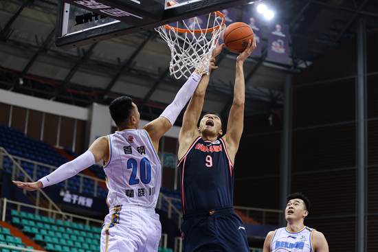 11月14日,CBA第一阶段最后一轮,北京首钢队对阵广东大益队。图为翟晓川防守易建联。视觉中国供图