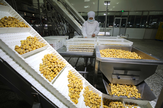 初冬时节,河北省宽城满族自治县的板栗深加工企业车间内一派繁忙,工人忙着加工即食板栗系列产品,供应国内外市场。近年来,宽城县板栗深加工产业发展迅速,当地通过“龙头企业+合作社+基地+农户”的方式,扩大板栗收储能力,实现板栗深加工产品全年不间断生产,带动农民增收致富,助力乡村振兴。刘环宇/摄(新华社发)