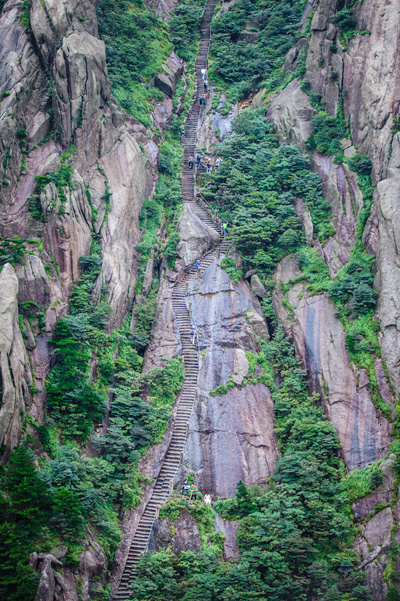 2018年8月22日,黄山天都峰远看近乎垂直的山路。 视觉中国供图