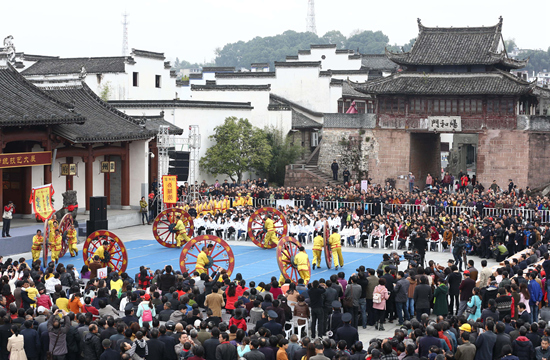 2015年11月10日,古徽州非遗民俗《轩辕车会》在安徽歙县古城表演。视觉中国供图