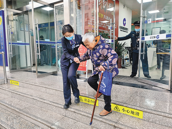 为方便行动不便的老年人能够更为“顺畅”地到网点办理业务,建设银行开展打造无障碍服务示范网点,推进无障碍硬件配置,加强员工无障碍服务技巧培训,制定特殊客户服务指引等工作,让优质服务触达每一位客户。