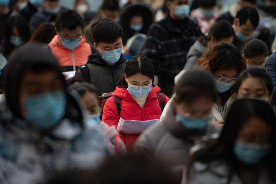 11月28日,山西省太原市,考生在考前复习。当日,中央机关及其直属机构2022年度考试录用公务员公共科目笔试举行。中新社记者 韦亮/摄