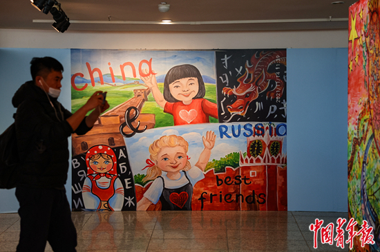 12月1日,北京中华世纪坛,观众在“2021中俄儿童创意节”优秀作品展上参观。“2021中俄儿童创意节”以“畅想2049——中俄建交百年”为主题,邀请中俄两国青少年以绘画、摄影、短视频等方式抒发对中俄两国未来的美好憧憬和祝福。活动在两周时间内就收到来自中俄两国的1.4万份作品,其中365件作品参与线下和云端展览。展览由中国教育国际交流协会和俄罗斯伊万诺沃国际儿童院共同主办,将展至12月5日。