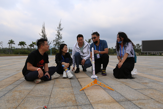 在文昌航天中心,研学班营员尝试火箭发射实验。