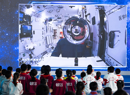 王亚平以此寄语孩子们:“你们都是祖国的花朵,含苞待放,未来是你们的。希望你们的梦想都能在这广袤的宇宙中绽放。”