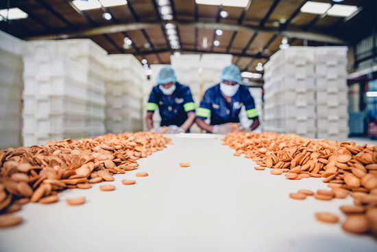 生产线工人正在收集刚烤好的饼干。视觉中国供图