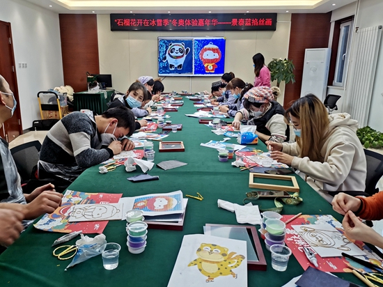 最近,马女士迷上了手工制作。下班后,她叫上几个小姐妹一起来到牛街和合动力空间,参加“石榴花开在冰雪季”冬奥体验嘉年华——景泰蓝掐丝珐琅画体验活动。在老师的专业指导下,她们和其他几个活动参与者分别完成了2022年北京冬奥会吉祥物冰墩墩和冬残奥会吉祥物雪容融的制作。