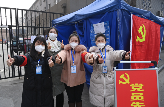 1月19日,在西安市新城区新民社区,防疫保障人员竖起大拇指合影。记者1月19日从陕西省卫生健康委员会获悉,1月18日0-24时,陕西报告无新增新冠肺炎本土确诊病例、疑似病例、无症状感染者,确诊患者治愈出院111例。 新华社记者 陶明/摄