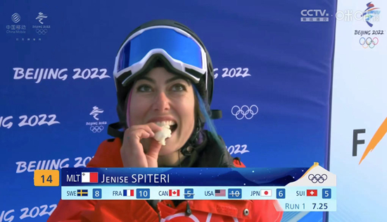 在解答完关于“豆包”的问题后,珍妮丝主动提及她没实现的目标,“我失误了,但我还想尝试900,本来打算孤注一掷,但我心里还有个声音在说,如果尝试900,大概率依然会摔,代表马耳他参加冬奥的机会来之不易,我想在赛场上能留下个‘站着’的记忆。”随即她补充道,“但我坚信900在未来等着我。”