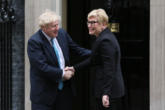 当地时间2月8日,英国伦敦。英国首相鲍里斯·约翰逊在唐宁街会见立陶宛总理因格丽达·希莫尼特。人民视觉供图