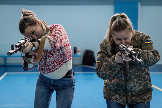 当地时间2月6日,乌克兰基辅。随着俄乌紧张局势升级,数百名平民加入预备役部队进行军事训练,他们中有成年男女也有儿童。人民视觉供图