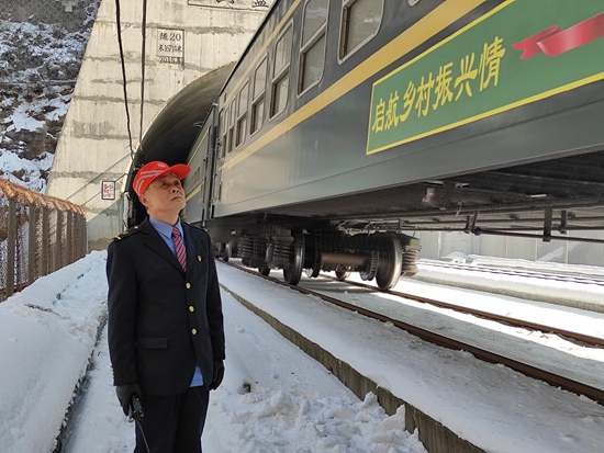 五等小站麻庵河车站地处甘肃省平凉国营麻庵林场深处,位于六盘山隧道和关山隧道之间,首尾相距仅30米左右。春节期间,麻庵河车站站长王民胜一直坚守在岗位上。李志杰/摄