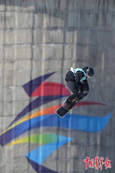 2月14日,北京冬奥会单板滑雪男子大跳台资格赛中,中国选手苏翊鸣获得155.25分,晋级决赛。 中青报·中青网记者 李隽辉/摄