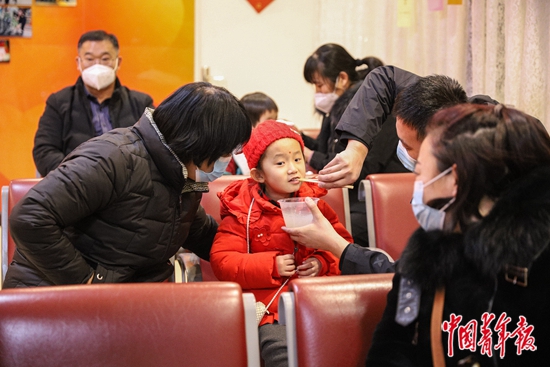 2月14日,一名小朋友在品尝工作人员送来的元宵。当日,北京站车站工作人员在素萍服务组举办了 “共度元宵节,一起向未来”活动,为旅客送上热乎乎的元宵,与旅客一起猜灯谜、送福字,让身处异乡的旅客感受节日的温馨。素萍服务组成立于2010年10月,是北京站为服务“老、幼、病、残、孕”重点旅客而专门成立的服务小组,以全国劳模李素萍的名字命名,主要由女性客运员组成。 实习生 卢舒珺/摄