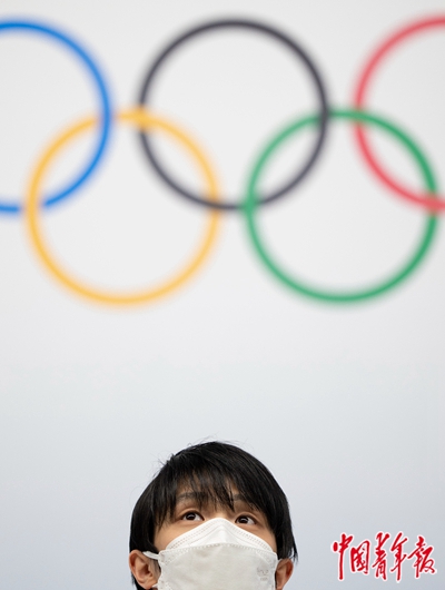 2月14日,日本花滑运动员羽生结弦的个人新闻发布会在北京冬奥会主媒体中心新闻发布厅举行。 中青报·中青网记者 李隽辉/摄