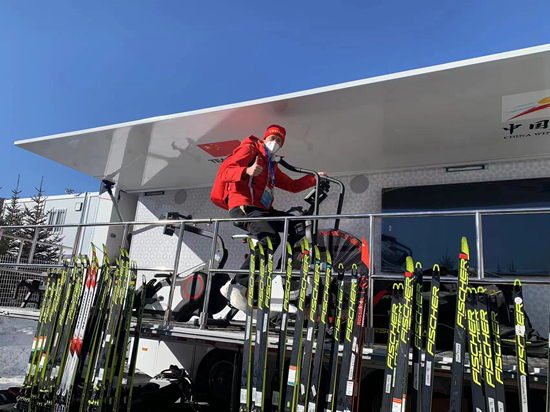在已经结束的越野滑雪比赛中,中国健儿多次刷新中国越野滑雪历史记录。代表运动员在冬奥会开幕式上宣誓的越野滑雪男子运动员王强和点燃主火炬的越野滑雪女子运动员迪妮格尔·衣拉木江,在比赛中使用的雪板也是在这台雪蜡车上打蜡维护的,两人都创下个人最好成绩。