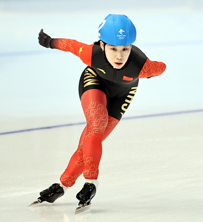 2月19日,北京冬奥会速度滑冰集体出发,中国选手郭丹在比赛中。 视觉中国供图