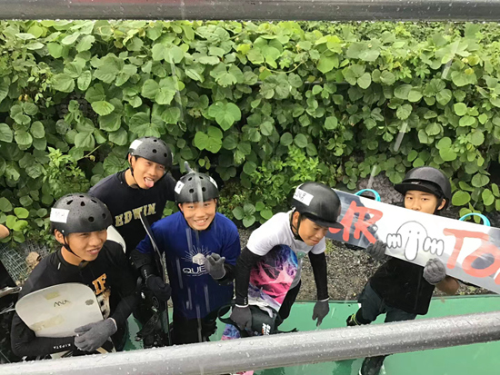 王晓兵(左二)和苏翊鸣(右一)在日本集训时合影。受访者供图