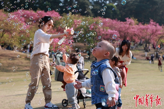 3月9日,市民到广西南宁石门森林公园踏青赏樱,在免费的公共空间尽情游玩。