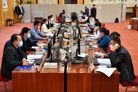 3月9日,十三届全国人大五次会议秘书处议案组建议小组的工作人员在工作,代表建议在这里批分处理后确定承办单位。从十三届全国人大五次会议秘书处获悉,到大会主席团决定的代表提出议案截止时间3月8日12时,大会秘书处共收到代表提出的议案487件。此外,目前收到代表对各方面工作提出的建议、批评和意见约8000件。新华社记者 李鑫/摄