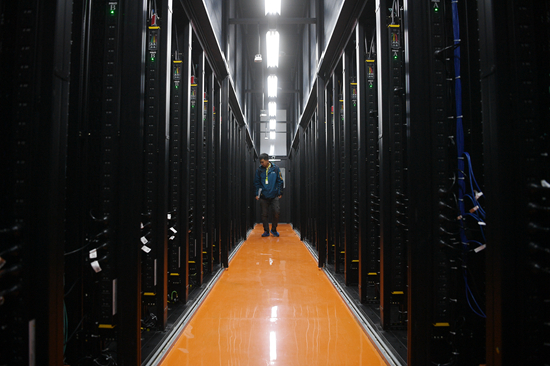 在西部云基地拍摄的由中国联通建设的国家(中卫)新型互联网交换中心机房(3月1日摄)。