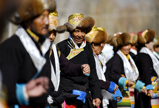 3月16日,西藏山南市昌珠镇门中岗社区举行春耕仪式。当日,西藏各地举行一年一度的春耕仪式。春耕在西藏农民的眼中,是一年之中最为隆重的农事活动,各地举行盛大的春耕仪式,祈福一年的丰收。新华社记者 张汝锋/摄