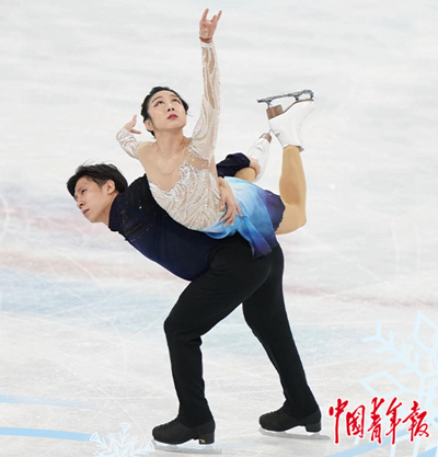 2月19日,北京首都体育馆,中国选手隋文静/韩聪在花样滑冰双人滑自由滑比赛中。中青报·中青网记者 李隽辉/摄