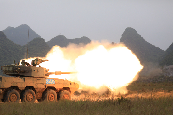 近日,海军陆战队某旅远赴桂北开展山地间装甲分队实弹射击演练,检验装甲分队在陌生复杂环境下的战技术水平。