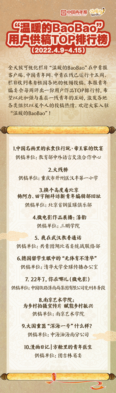 “温暖的BaoBao”用户供稿TOP排行榜(2022.4.9-4.15)