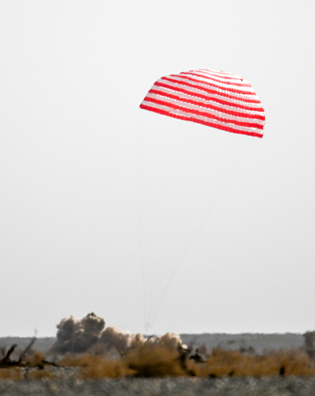 4月16日,神舟十三号载人飞船返回舱在东风着陆场成功着陆。新华社记者 连振/摄