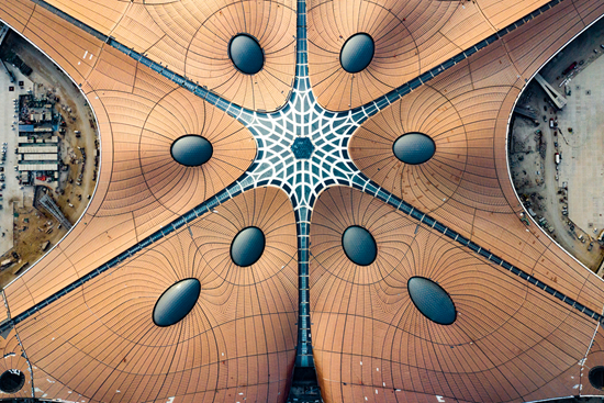 2019年1月6日,北京大兴国际机场。该机场共创造40余项国际、国内第一。这里是世界最大的单体隔震建筑、世界首个高铁下穿航站楼、世界首个“双进双出”航站楼。视觉中国供图