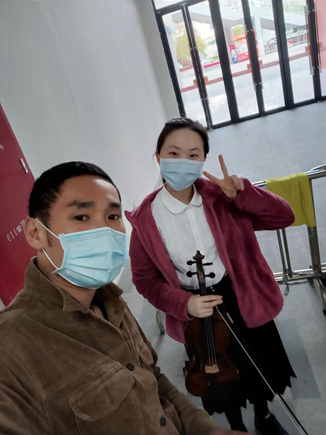 刘强每天跑步的走廊,也是一名15岁姑娘的“琴房”。她从温州赶来上海参加音乐学院的小提琴考试,被疫情困住了。在方舱,她每天坚持练琴5小时以上。进入方舱的第四天,她参加了音乐学院视频初试。