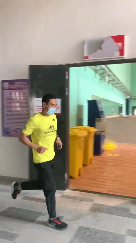 4月4日早上,刘强带着行李住进方舱。刚安顿好,他便换上跑鞋,绕着方舱跑了第一个10公里。