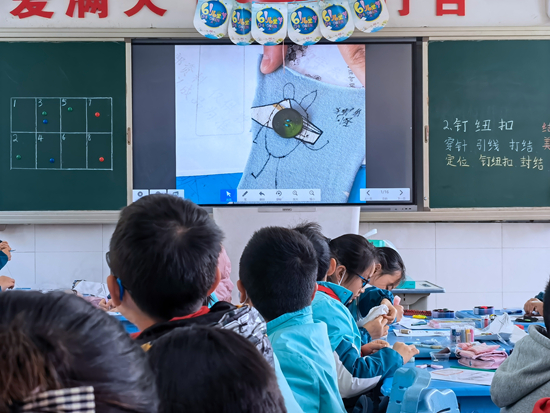 合肥师范学院附属实验小学钉纽扣劳动课堂。 校方供图