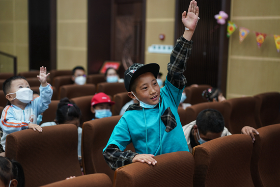6月1日,在南京医科大学第二附属医院,小患者参加海洋生物知识竞答。当日是“六一”国际儿童节,南京医科大学第二附属医院等单位为该院“心佑工程—西藏行”的数十名先天性心脏病小患者举行丰富多彩的活动,送上节日祝福。 新华社记者 季春鹏/摄