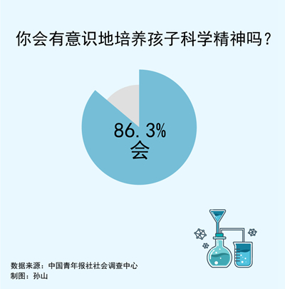 调查中,86.3%的受访家长表示在孩子成长过程中,自己会有意识地培养孩子的科学精神。