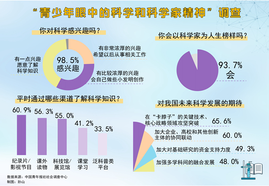 98.5%受访青少年对科学感兴趣