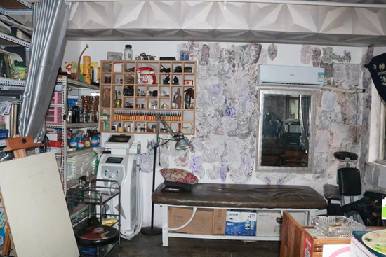 锦绣堂文身馆整改前的现场实拍。