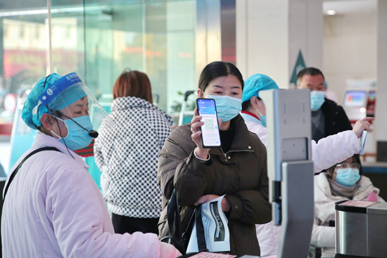 2021年12月29日,浙江嘉兴市民在海警医院通过智慧医疗系统扫码就医。 视觉中国供图