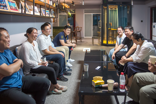 2020年7月24日,团山东滨州市委在“翼立方”青年俱乐部举办“激扬青春·筑梦滨州”青春故事分享会。清华、北大来滨就业大学生共同畅谈。 人民视觉供图