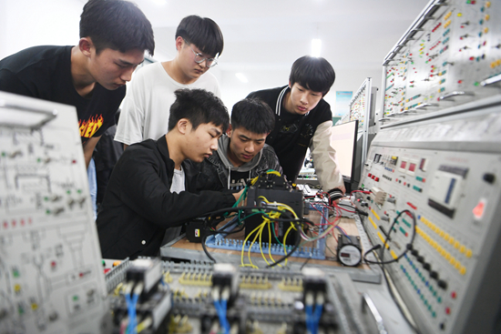 2022年5月11日,安徽省亳州职业技术学院智能工程系机电一体化专业的学生正在上课。 视觉中国供图