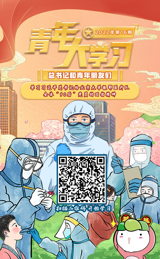 2020年3月15日,习近平总书记给北京大学援鄂医疗队全体“90后”党员的回信中指出,“在新冠肺炎疫情防控斗争中,你们青年人同在一线英勇奋战的广大疫情防控人员一道,不畏艰险、冲锋在前、舍生忘死,彰显了青春的蓬勃力量,交出了合格答卷。广大青年用行动证明,新时代的中国青年是好样的,是堪当大任的!”本期“青年大学习”网上主题团课“学习习近平总书记给北京大学援鄂医疗队全体‘90后’党员的回信精神”,带领广大团员青年一起学习相关内容。